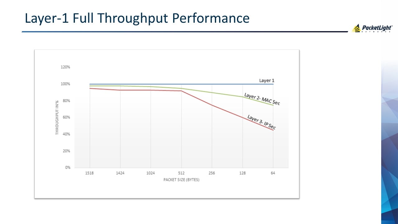 A L1 titkosítás, szemben az L2, L3 titkosítással, nem csökkenti az adatátviteli kapacitást