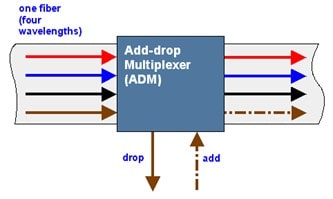 Az add/drop multiplexer (ADM) eszközök működési elve: Az áthaladó jelek közül néhány "leválasztódik" (drop). A helyükre új jelek illeszthetők (add), amelyek az eszközről egy másik célállomásra irányíthatók. A hozzáadott jel ugyanazt az optikai csatornát (hullámhosszot) használja, mint az elejtett jel.