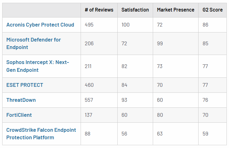 Az Acronis lett a legjobb gyártó a G2 végpontvédelmi elemzésében