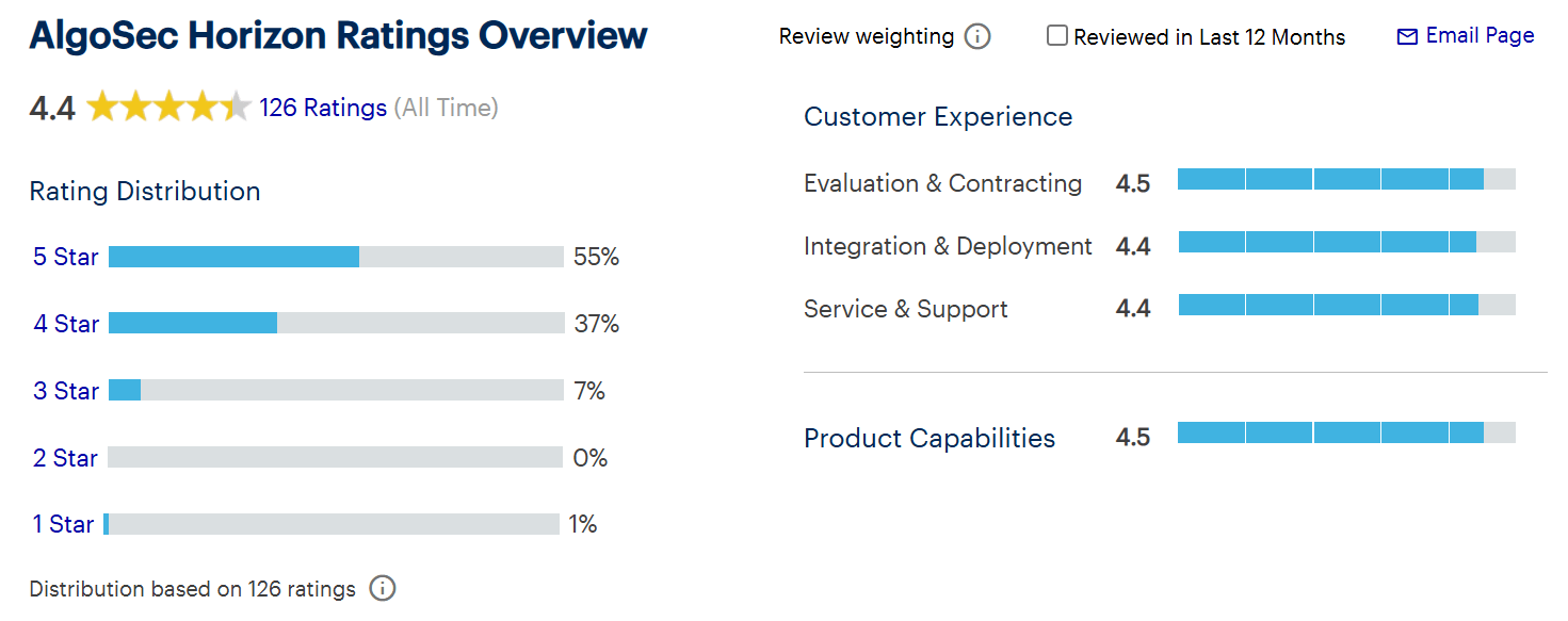Az AlgoSec Horizon platform „bizonyítványa” a Gartner Peer Insights weboldalon