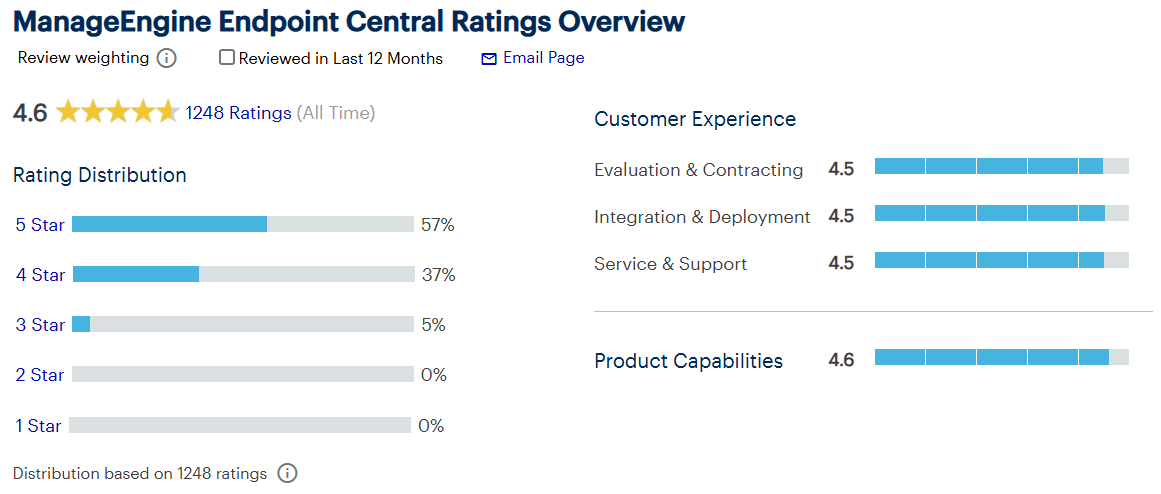 A Gartner Peer Insights honlapon a friss értékelések alapján a legnépszerűbb és az egyik legjobb UEM megoldásnak számít a ManageEngine Endpoint Central.