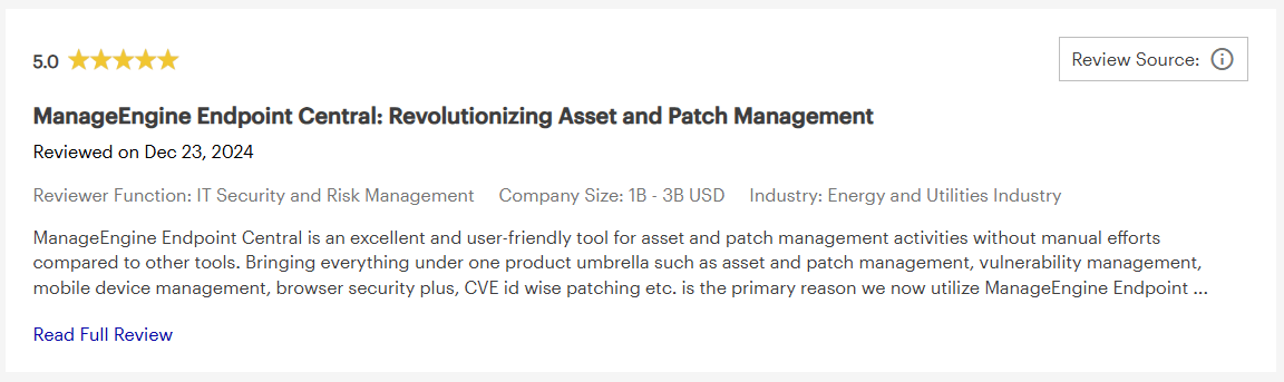 A ManageEngine Endpoint Centralhoz érkezett legfrissebb értékelés a Gartner Peer Insights honlapon