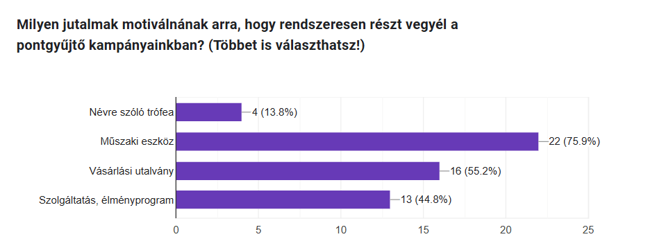A kérdőív elsősorban a november 30-án lejáró pontgyűjtő kampányunk köré épült. Az alábbiakban összesítjük és ábrákon megmutatjuk az eredményeket.
