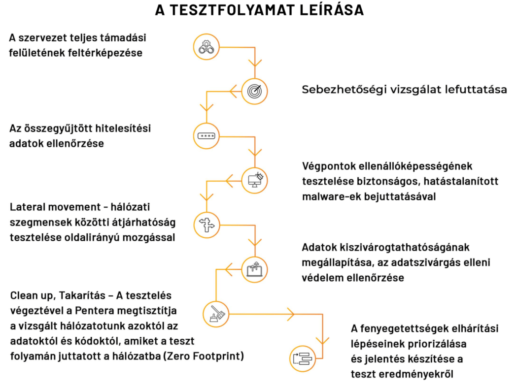A szolgáltatás lényege egy átfogó penetrációs tesztelés elvégzése a Pentera erre specializált eszközével. Az automatikus biztonsági validáció során a Pentera ellenőrzi a teljes infrastruktúra – szerverek, munkaállomások és hálózati eszközök – biztonságát, emellett elvégzi az Active Directory ellenőrzését is. A teszt eredménye egy átfogó jelentés, amely prezentálja a feltárt sérülékenységeket, hiányosságokat és egyéb megállapításokat, a hozzájuk tartozó korrekciós intézkedésekre vonatkozó ajánlásokkal.