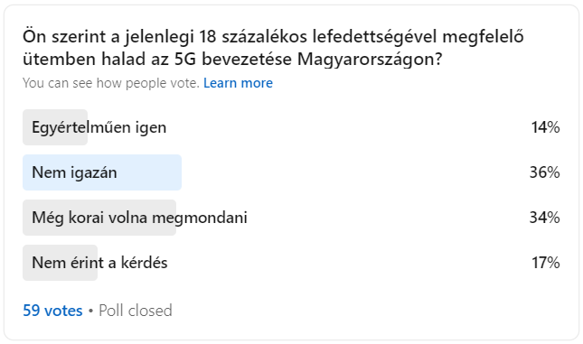 A RelNet LinkedIn oldalán véget ért szavazáson arról kérdeztük a látogatóinkat, hogy szerintük megfelelő ütemben halad-e az 5G bevezetése Magyarországon.