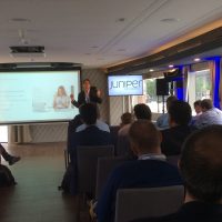 A nap Fazakas László vendégelőadásával indult az 1 éves GDPR tanulságairól. Majd gyártóink legfrissebb fejlesztési irányaikat, legújabb termékeiket mutatták be partnereinknek. Michal Zlesak előadása az Autonóm nagyvállalatokról szólt. Az Extreme Networks szerint a jövő nagyvállalati hálózatainak menedzselésében a mesterséges intelligenciának kiemelkedően fontos szerepe lesz. A Skybox előadása a kiberfenyegetések egyszerű menedzsmentjét mutatta be rávilágítva, hogy hogyan tudjuk kiszűrni ki azokat a sérülékenységeket, melyekre figyelni kell. Thomas Mammitzsch (Pulse Secure) prezentációja a hibrid hozzáférés biztosításáról szólt a szoftver által meghatározott határvonalon keresztül. Az SSH előadásából megismerhettük a Lean Cloud és Just-In-Time hozzáféréskezelést a hibrid felhőmegoldások esetén. A Kemp Technologies bemutatta, hogyan lehet optimalizálni és védelmet biztosítani költségcsökkentés és magas rendelkezésre állás mellett az ADC technológia segítségével. A CTS esettanulmányából az ipari Ethernet Secure Fast Ring applikációját ismerhettük meg a Haifa Cable Car projekten keresztül. Szalai Tamás a CoSoSys Endpoint Protector megoldásával mutatta meg hogyan derítsük fel, tartsuk ellenőrzésünk alatt és védjük érzékeny adatainkat. A Panda Security előadása a GDPR-nak való megfelelést mutatta be a gyakorlatban. Megtudhattuk, hogy a Panda Data Control segítségével miként lehet megvalósítani a folyamatos adatleltárt, az egyszerű keresést a különböző adatbázisokban, a riasztások, monitorozások és fájlműveleti információk állandó szem előtt tartásával. A Juniper előadása az új Wi-Fi megoldásáról a MIST-ről szólt, amely a mesterséges intelligencia alkalmazásával igyekszik a hálózatautomatizálás problémáját megoldani Wi-Fi integrációval.