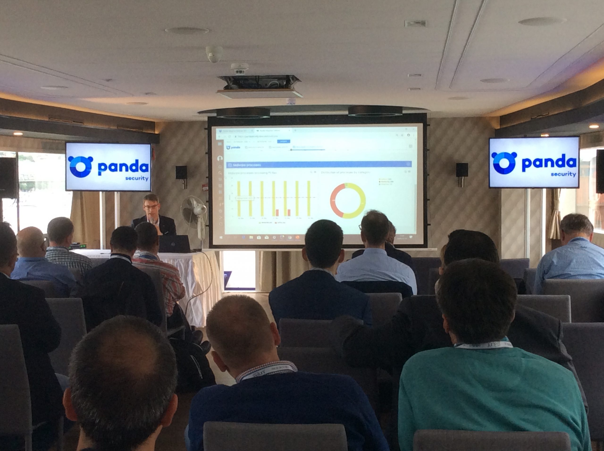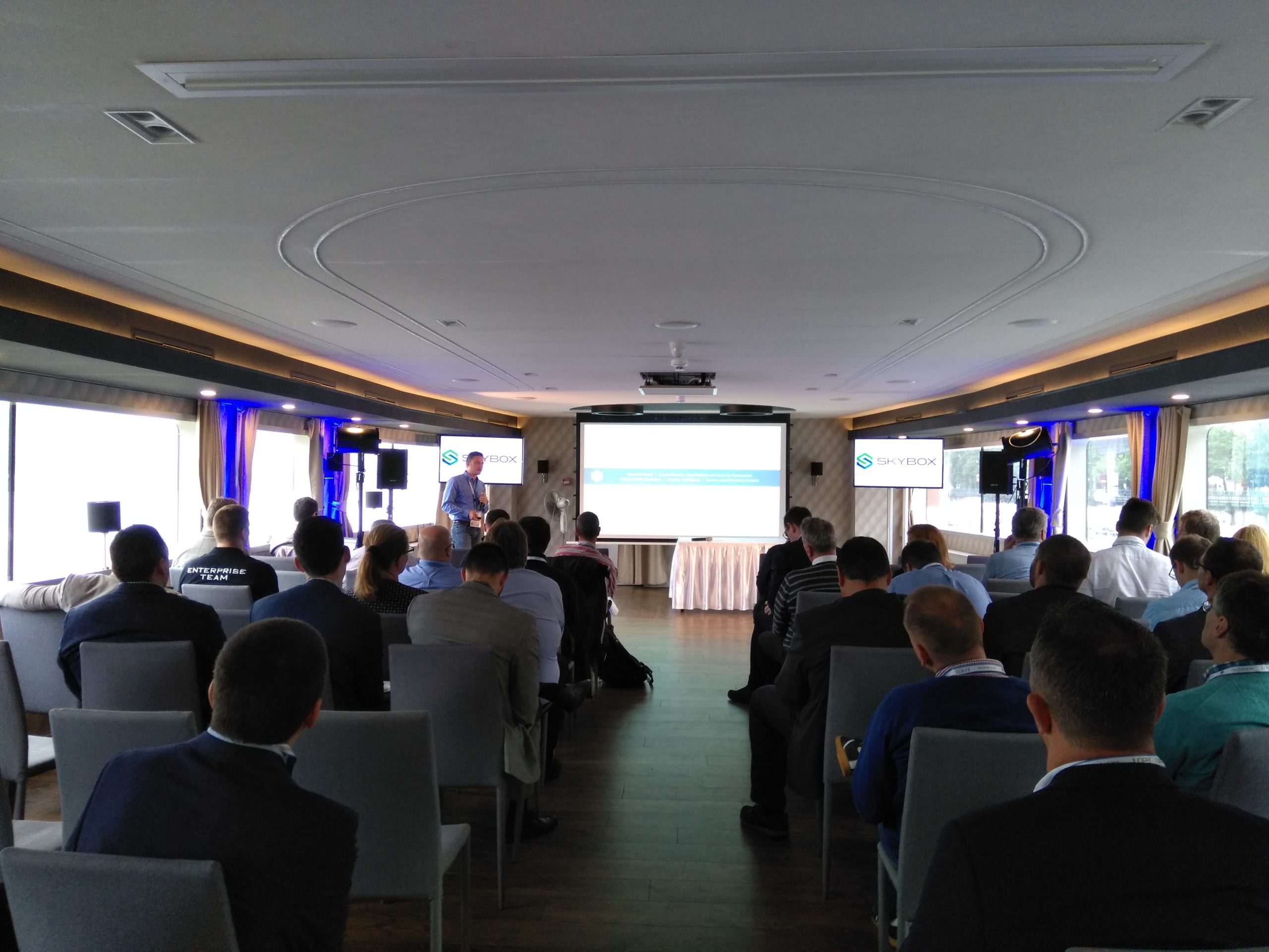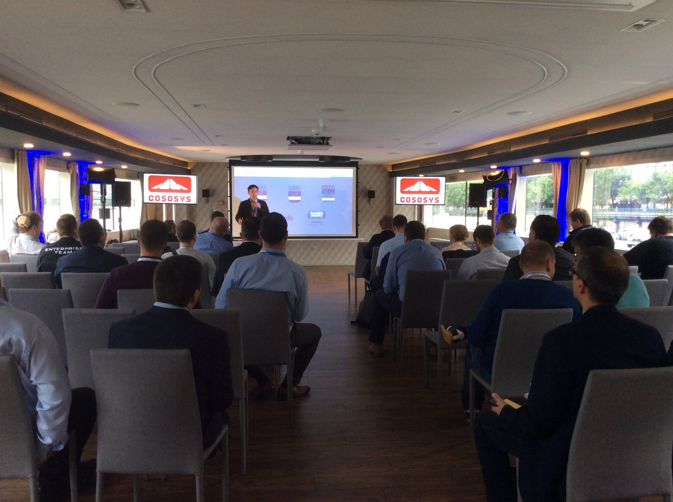A nap Fazakas László vendégelőadásával indult az 1 éves GDPR tanulságairól. Majd gyártóink legfrissebb fejlesztési irányaikat, legújabb termékeiket mutatták be partnereinknek. Michal Zlesak előadása az Autonóm nagyvállalatokról szólt. Az Extreme Networks szerint a jövő nagyvállalati hálózatainak menedzselésében a mesterséges intelligenciának kiemelkedően fontos szerepe lesz. A Skybox előadása a kiberfenyegetések egyszerű menedzsmentjét mutatta be rávilágítva, hogy hogyan tudjuk kiszűrni ki azokat a sérülékenységeket, melyekre figyelni kell. Thomas Mammitzsch (Pulse Secure) prezentációja a hibrid hozzáférés biztosításáról szólt a szoftver által meghatározott határvonalon keresztül. Az SSH előadásából megismerhettük a Lean Cloud és Just-In-Time hozzáféréskezelést a hibrid felhőmegoldások esetén. A Kemp Technologies bemutatta, hogyan lehet optimalizálni és védelmet biztosítani költségcsökkentés és magas rendelkezésre állás mellett az ADC technológia segítségével. A CTS esettanulmányából az ipari Ethernet Secure Fast Ring applikációját ismerhettük meg a Haifa Cable Car projekten keresztül. Szalai Tamás a CoSoSys Endpoint Protector megoldásával mutatta meg hogyan derítsük fel, tartsuk ellenőrzésünk alatt és védjük érzékeny adatainkat. A Panda Security előadása a GDPR-nak való megfelelést mutatta be a gyakorlatban. Megtudhattuk, hogy a Panda Data Control segítségével miként lehet megvalósítani a folyamatos adatleltárt, az egyszerű keresést a különböző adatbázisokban, a riasztások, monitorozások és fájlműveleti információk állandó szem előtt tartásával. A Juniper előadása az új Wi-Fi megoldásáról a MIST-ről szólt, amely a mesterséges intelligencia alkalmazásával igyekszik a hálózatautomatizálás problémáját megoldani Wi-Fi integrációval.