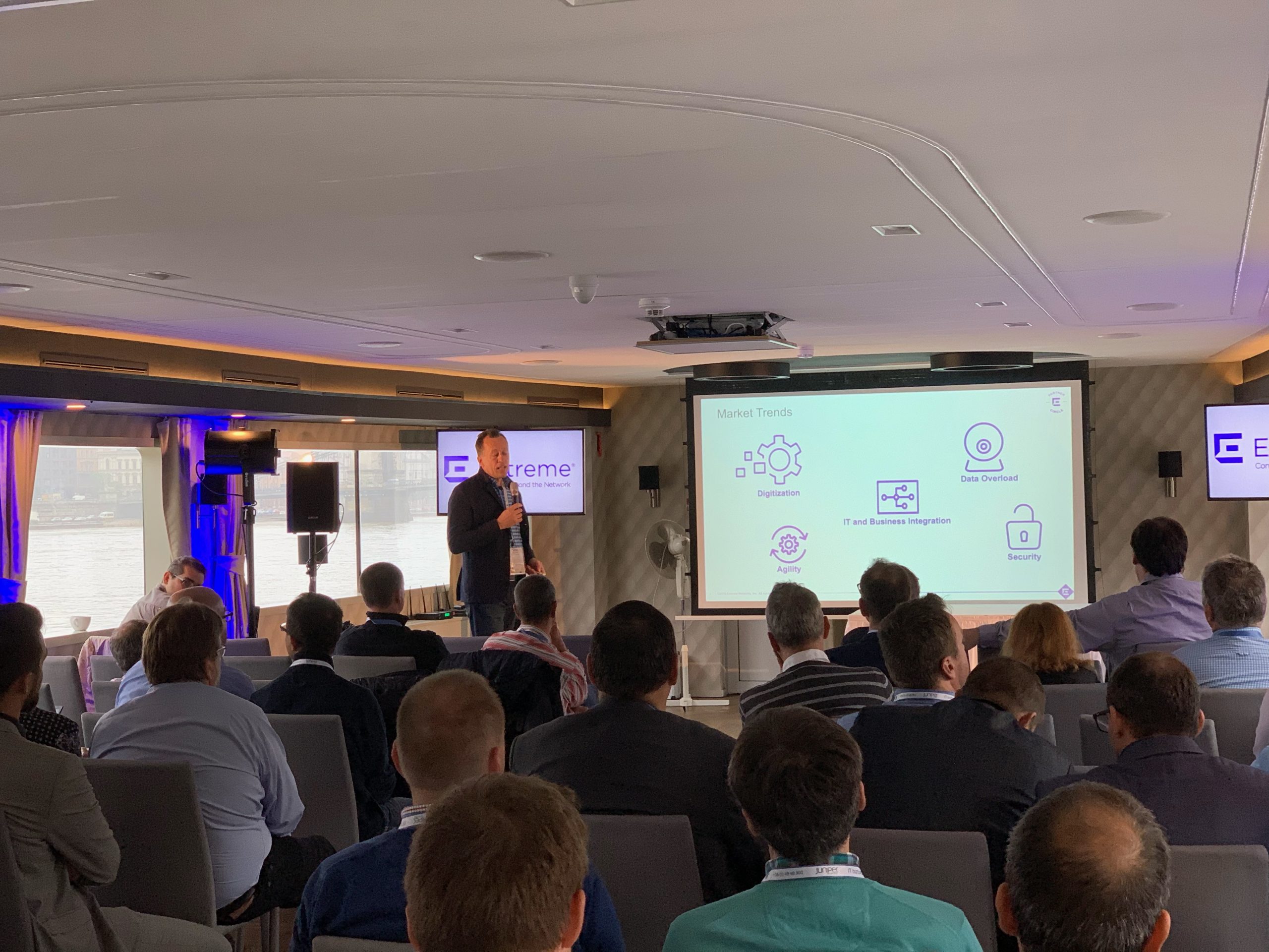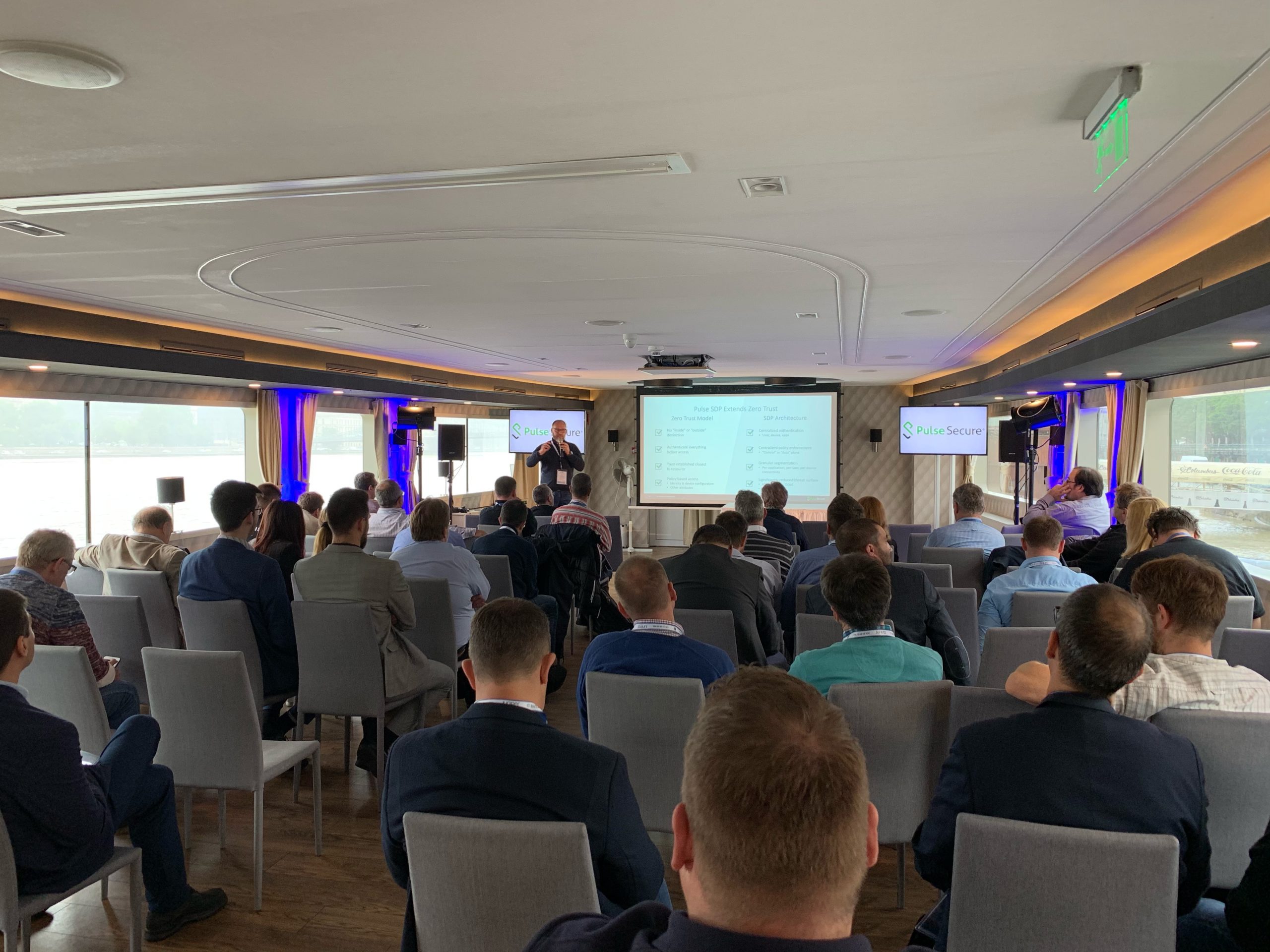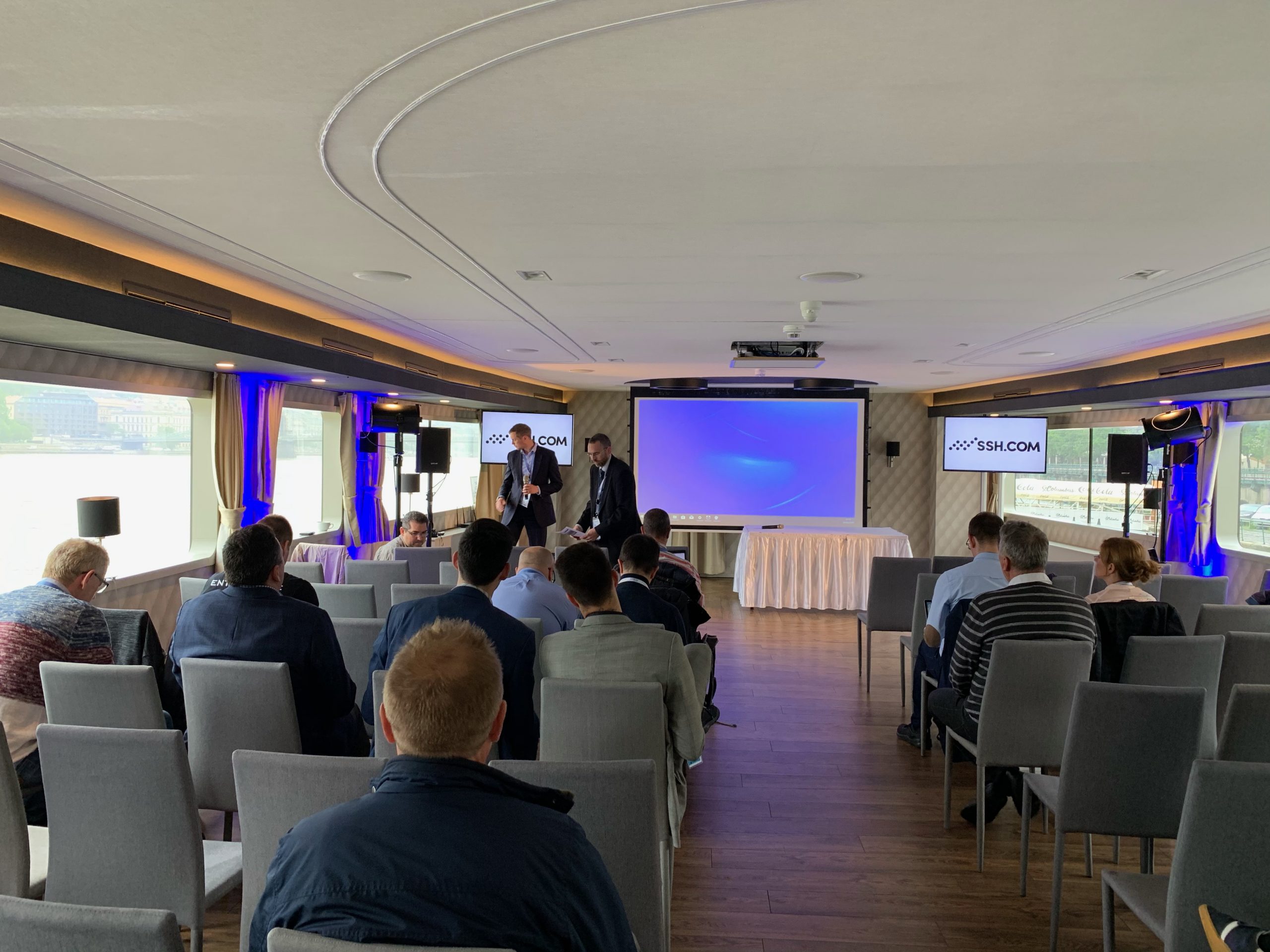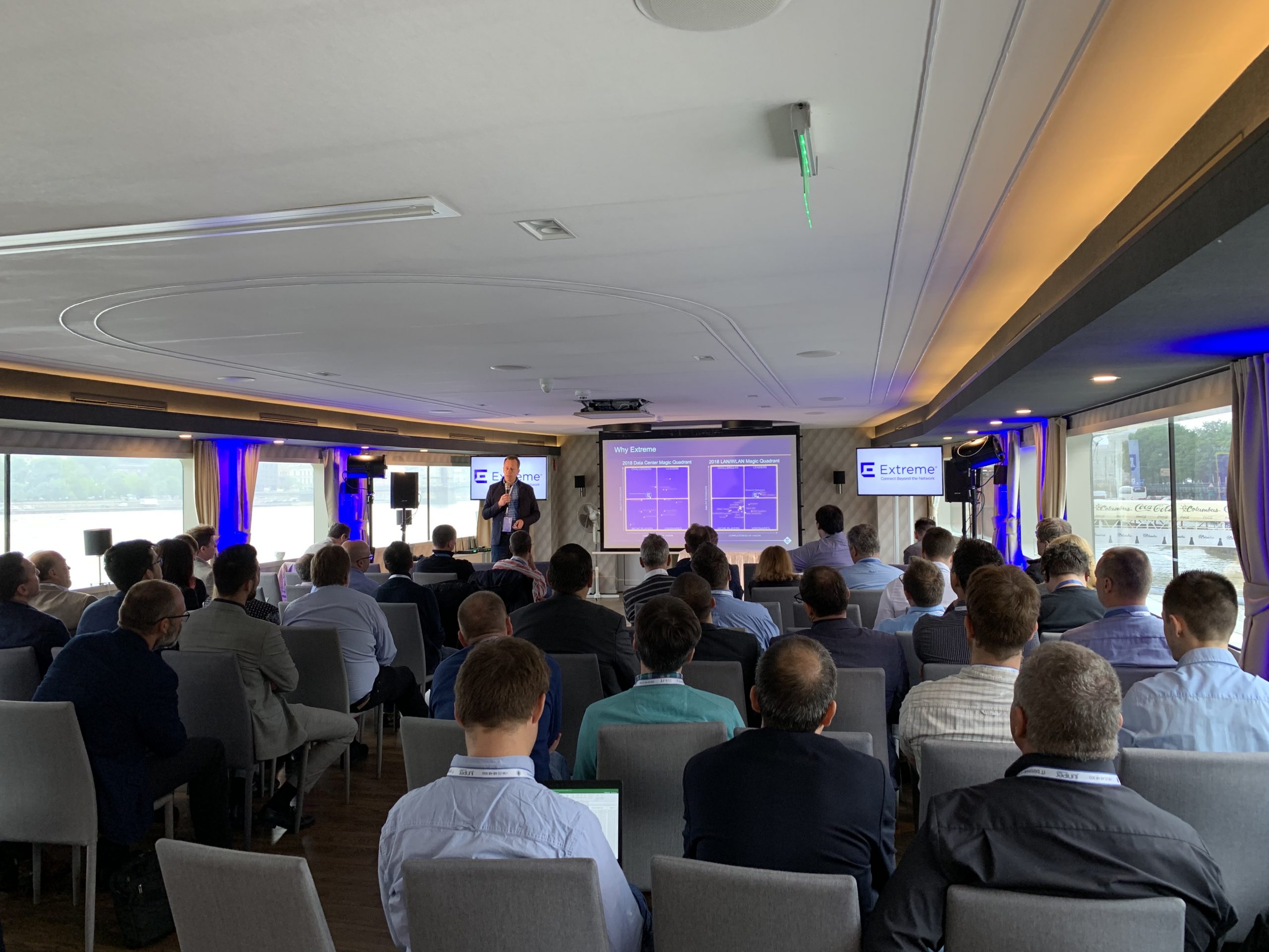 A nap Fazakas László vendégelőadásával indult az 1 éves GDPR tanulságairól. Majd gyártóink legfrissebb fejlesztési irányaikat, legújabb termékeiket mutatták be partnereinknek. Michal Zlesak előadása az Autonóm nagyvállalatokról szólt. Az Extreme Networks szerint a jövő nagyvállalati hálózatainak menedzselésében a mesterséges intelligenciának kiemelkedően fontos szerepe lesz. A Skybox előadása a kiberfenyegetések egyszerű menedzsmentjét mutatta be rávilágítva, hogy hogyan tudjuk kiszűrni ki azokat a sérülékenységeket, melyekre figyelni kell. Thomas Mammitzsch (Pulse Secure) prezentációja a hibrid hozzáférés biztosításáról szólt a szoftver által meghatározott határvonalon keresztül. Az SSH előadásából megismerhettük a Lean Cloud és Just-In-Time hozzáféréskezelést a hibrid felhőmegoldások esetén. A Kemp Technologies bemutatta, hogyan lehet optimalizálni és védelmet biztosítani költségcsökkentés és magas rendelkezésre állás mellett az ADC technológia segítségével. A CTS esettanulmányából az ipari Ethernet Secure Fast Ring applikációját ismerhettük meg a Haifa Cable Car projekten keresztül. Szalai Tamás a CoSoSys Endpoint Protector megoldásával mutatta meg hogyan derítsük fel, tartsuk ellenőrzésünk alatt és védjük érzékeny adatainkat. A Panda Security előadása a GDPR-nak való megfelelést mutatta be a gyakorlatban. Megtudhattuk, hogy a Panda Data Control segítségével miként lehet megvalósítani a folyamatos adatleltárt, az egyszerű keresést a különböző adatbázisokban, a riasztások, monitorozások és fájlműveleti információk állandó szem előtt tartásával. A Juniper előadása az új Wi-Fi megoldásáról a MIST-ről szólt, amely a mesterséges intelligencia alkalmazásával igyekszik a hálózatautomatizálás problémáját megoldani Wi-Fi integrációval.