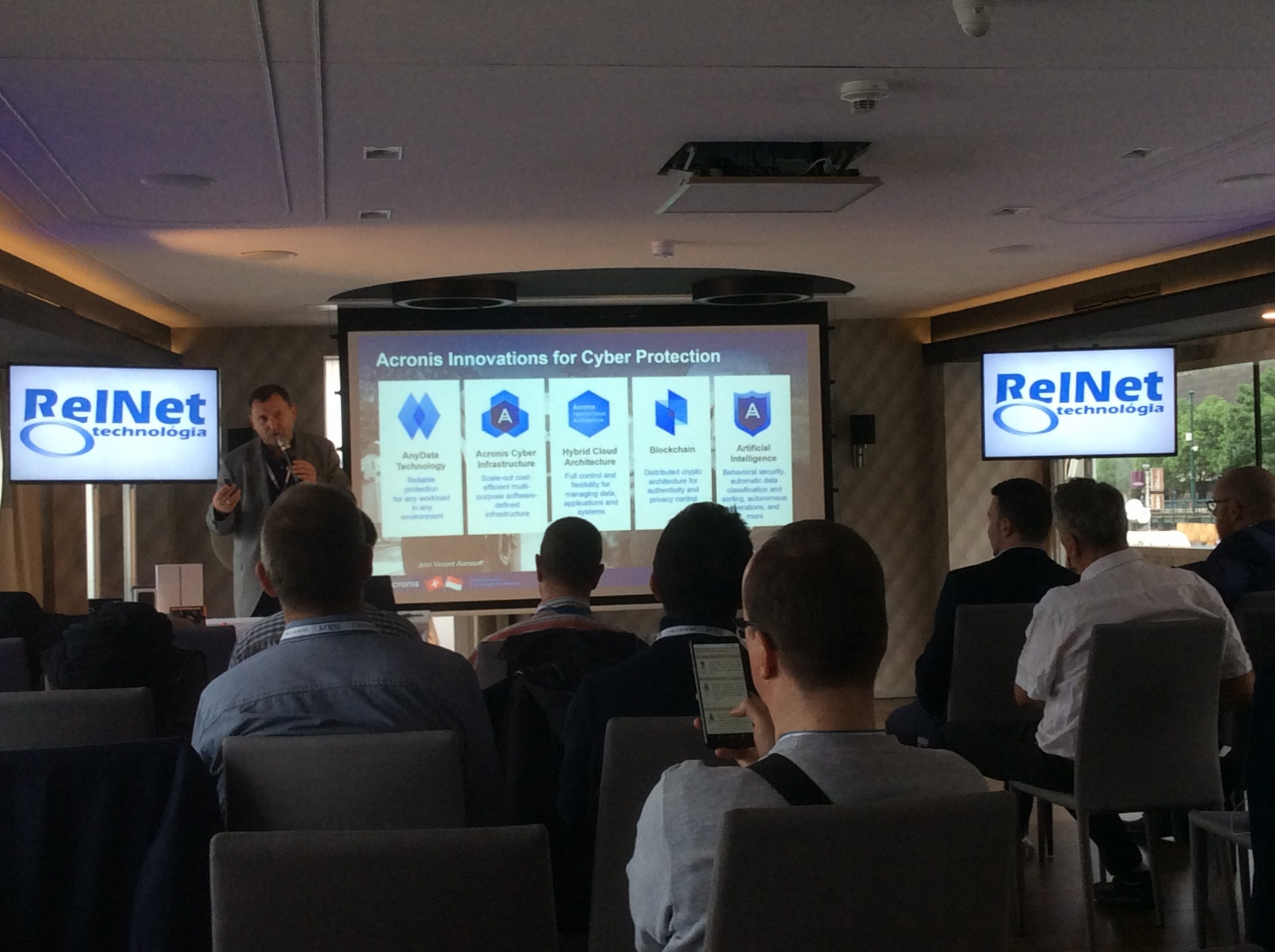 A Garland a Network Test Access Points (TAPs) = 100%-os átláthatóság – Lássunk minden bitet, bájtot, és csomagot a hálózatunkon címmel tartott előadást. Az Acronis kibervédelmi megoldását – az adatvédelmen túlmutató technológiai szintet – ismertette Artur Cyganek. Végül a Stormshield üdvözlő videójával zárult a szakmai nap, amelyben Eric Hohbauer a gyártó értékesítésért felelős alelnöke köszöntötte a résztvevőket és jelentette be a RelNet és a Stromshield stratégiai megállapodását.