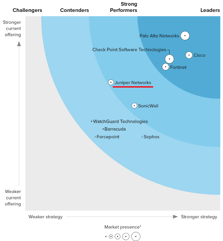 „Erős szereplő” lett a Juniper Networks a vállalati tűzfalmegoldásokat elemző Forrester Wave jelentésben.